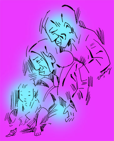 Tiếng đứa trẻ khóc váng cả nhà.Nó đạp đôi chân bụ bẫm, hắn tè, vót một cái dòng nước trong vắt cao vồng. Bà đỡ cười phe phé bảo rằng: