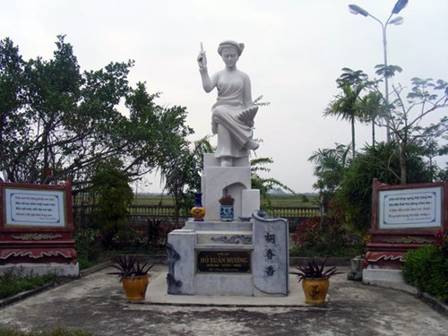 Tượng đài nữ sĩ Hồ Xuân Hương được đặt tại khu đền thờ của dòng họ Hồ tại làng Quỳnh Lưu, Nghệ An.
