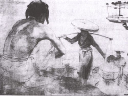 Chợ gạo bên hữu ngạn sông Hồng (mực nho năm 1930).
