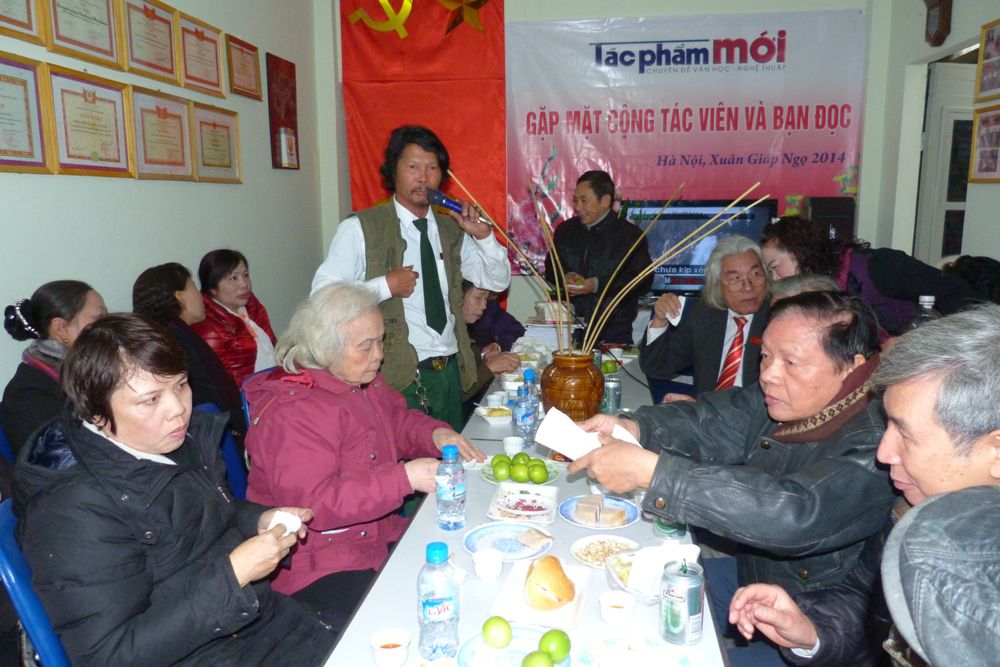 Ảnh: Tác giả (ngoài cùng bên trái) tại buổi gặp mặt CTV và Bạn đọc TÁC PHẨM MỚI, năm 2014