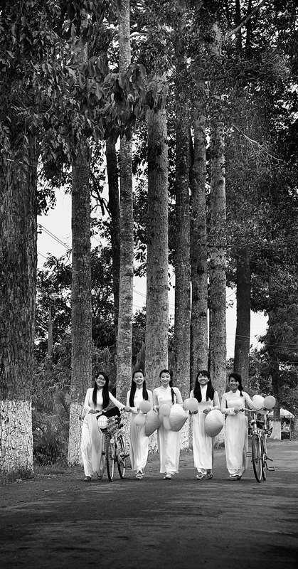 Hàng cây cao to che mát con đường làng - con đường mà hàng ngày các em học sinh đến trường.