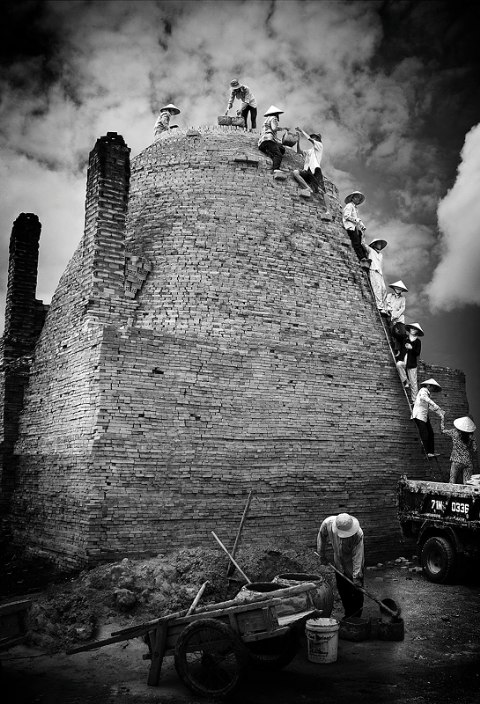 Nhũng người thợ dang khẩn trương xây lò gạch mới