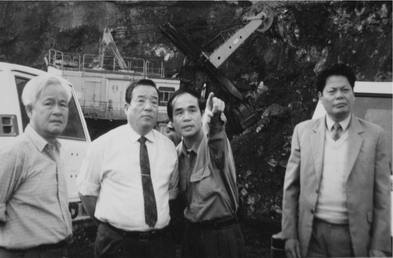 Ông Phan chỉ đạo sản xuất tại Mỏ than Núi Béo- Tác giả Trần Xuân Viên thứ 4, từ trái sang.