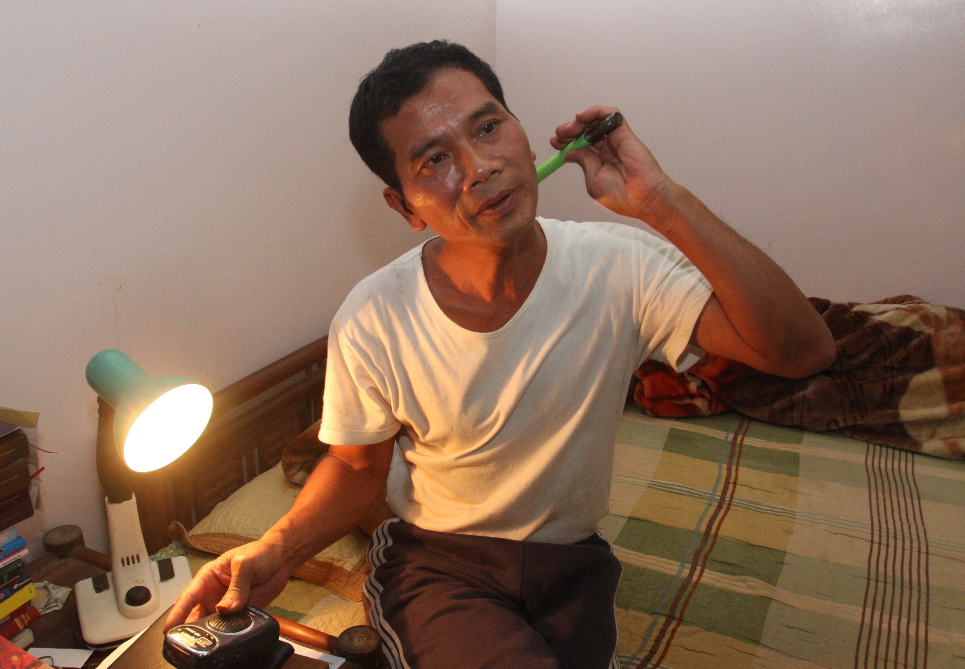 Cô bạn đồng nghiệp tôi hỏi: “Sao anh đến giờ anh không lấy vợ?”. Ông không nói gì, chỉ tay vào dòng chữ “Thà chết chứ không vơ lấy tội” được lồng trong khung kính, treo trang trọng trên bức tường. Nói rồi ông đọc bài vè trào lộng về nỗi…sợ vợ trong dân gian. Ông thuộc nhiều thơ châm biếm. Ông biết nhiều chuyện, nhiều tích cổ. Chuyện gì ông cũng vận dụng vè, tiếu lâm vào khiến khách cười rôm rả và cảm giác như ông không bao giờ biết buồn?