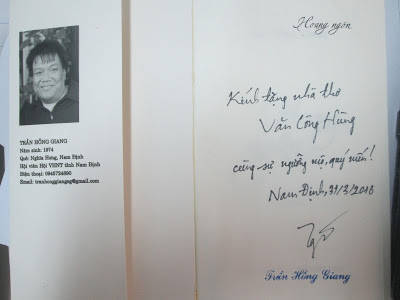 Không nhớ là tôi nghe tên Trần Hồng Giang từ khi nào, nhưng thi thoảng có đọc, nhớ láng máng ở Nam Định có mấy ông làm thơ trẻ, ngoài Giang còn có một ông rất hay nháy máy, vài tiếng một cú nháy máy cho bất cứ ai ông này quen, sau bị phản ứng, không thấy nháy máy nữa, một ông chuyên lục bát, lấy tên mình gắn với thể thơ luôn, là Kiên Lục bát, thơ làm ra đàn bà con gái nức nở nhớ...