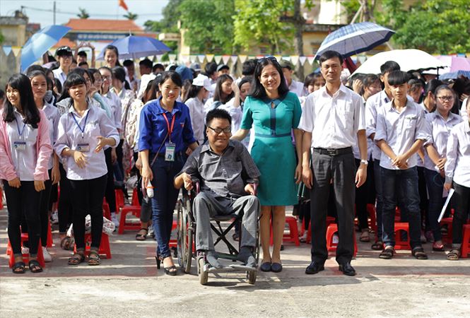 Trần Hồng Giang đến trò chuyện cùng học sinh trường THPT Nam Trực (Nam Định).