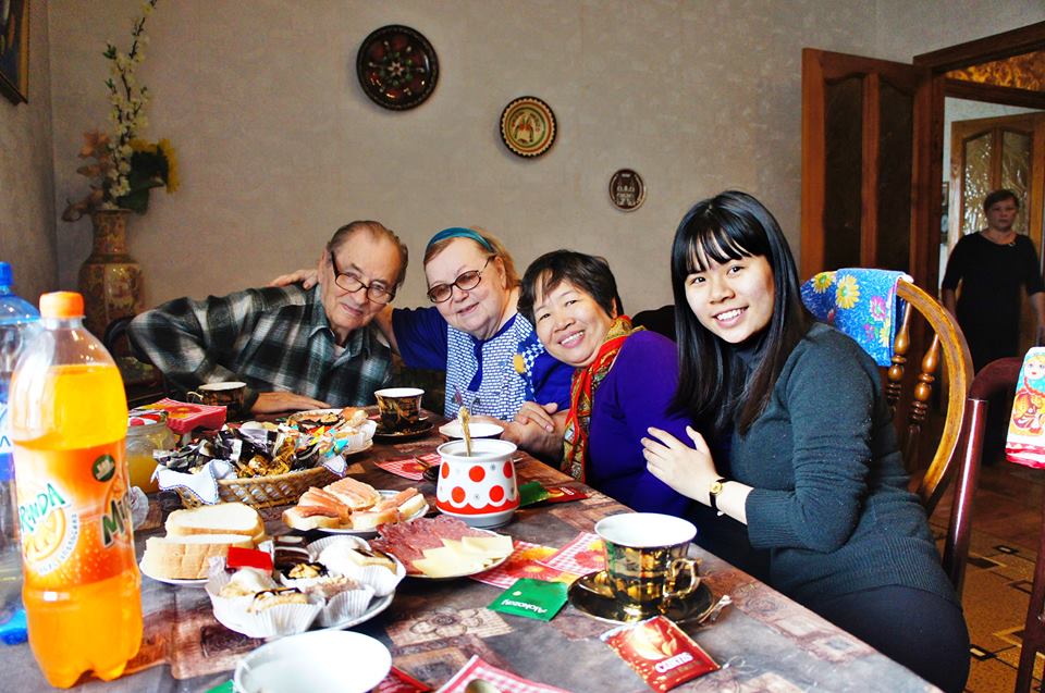 Thời gian bà giáo ở Hà Nội, cứ đến lễ Tết là chúng tôi lại đon đả, con bồng con bế đến khách sạn Kim Liên Hà Nội thăm bà, mang theo bếp ăn của Việt Nam. Để đón tiếp chúng tôi, bà cũng chuẩn bị những món ăn truyền thống của Nga như bánh mỳ đen, muối, bơ, phomat, salad Nga… Chúng tôi quây quần, ríu rít bên nhau như trong một gia đình, thật ấm áp, thật hạnh phúc và thật khó quên.