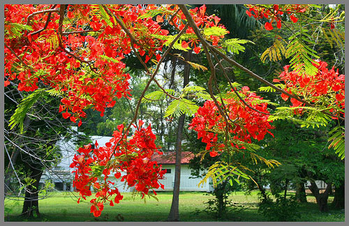Mùa hè, khung trời đã rực rỡ nắng với muôn màu sắc. Bầu trời trở nên xanh hơn, sâu hơn và bao la hơn. Mùa hè, sắc hồng của phượng vĩ nơi sân trường gợi nhắc một mùa thi, một mùa chia tay của tuổi học trò. Những cánh phượng đỏ tươi như ẩn chứa những lời thì thầm của kỷ niệm. Lời thì thầm khiến các bạn học sinh bâng khuâng trước ngưỡng cửa cuộc đời.