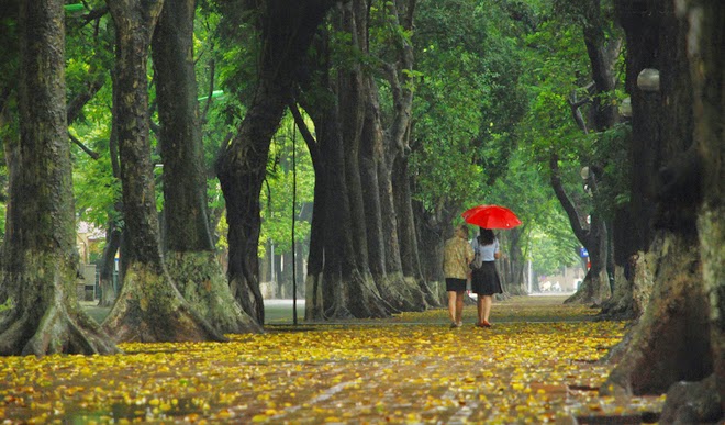Đến Hà Nội mùa này, hẳn sẽ thấy thành phố vô cùng lãng mạn, những hồ nước long lanh soi bóng mây trời, những con đường rực rỡ màu nắng màu hoa. Hoa phượng đỏ, hoa bằng lăng tím, hoa muồng vàng, hoa bọ cạp cũng vàng tươi, lộng lẫy, tròn đầy như những lẵng hoa tươi đặt dọc các con đường dẫn vào thành phố. Dạo chơi trong nắng, trong hoa, trong dàn nhạc ve bất tận ngân trong vòm lá biếc, chợt thấy yêu Hà Nội vô cùng.