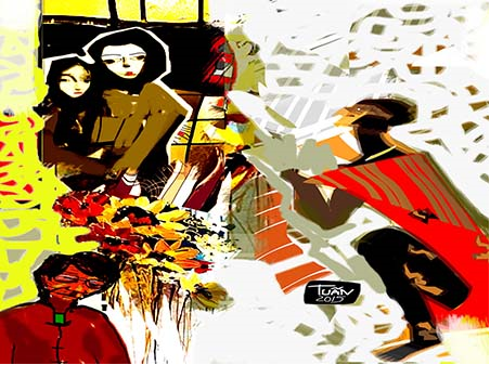 “Ối trời cao đất dày ơi! Sao con nỡ bỏ mẹ mà đi?... Con ơi…!”. Tiếng khóc nỉ non thảm thiết như từ nơi xa thẳm vọng tới làm bà Nụ chợt tỉnh. Phải gắng gượng lắm, bà mới khẽ mở được cặp mắt mờ đục. Làn sương trắng mỏng mảnh bủa vây. Không gian vắng lặng. Một lát cắt thẳng từ trên cao chọc xuống. Cố rướn hai mí mắt nặng trĩu chực sụp lại, bà nhận ra tia nắng quen thuộc từ viên ngói vỡ lâu nay trên nóc nhà. Thì ra đang là giữa trưa.