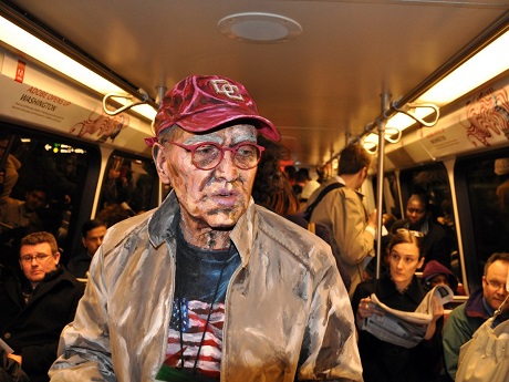 Một ông cụ đã được hóa trang tạo hình, ông xuất hiện trên một chuyến tàu. Thoạt nhìn bức ảnh, người ta tưởng trong ảnh là một bức tranh, nhưng khi nhìn ra bối cảnh xung quanh, người xem mới nhận thấy sự đối lập.