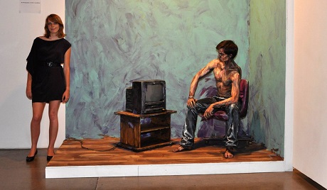 Chỉ cần quan sát kỹ một chút, bạn sẽ nhận ra người mẫu sống động bên dưới lớp màu “giả 2D”. Như bức ảnh phía trên kỳ thực được tạo ra từ một bối cảnh như thế này… Ở tại một số cuộc triển lãm, Alexa sắp đặt bối cảnh trực quan để công chúng có thể hiểu cô đã làm gì để có thể tạo nên tác phẩm của mình.