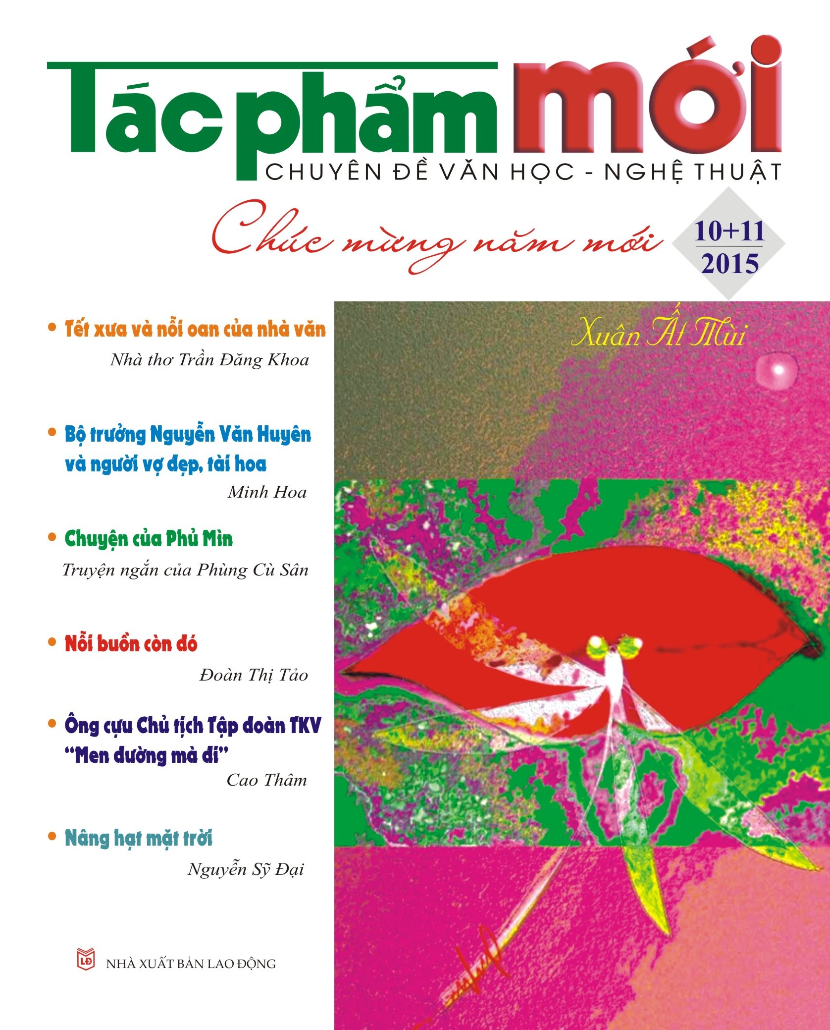 Đó là bức tranh Mùa xuân của Họa sĩ Nguyễn Duy Nghiên, Giám đốc Trung tâm Nghiên cứu và Phát triển Mỹ thuật ứng dụng trường ĐH Mỹ thuật Công nghiệp. Tranh được giới thiệu trên trang bìa TÁC PHẨM MỚI số Xuân Ất Mùi. Trên nền thảm cỏ mùa xuân xanh biếc, ta thấy rực rỡ đủ sắc hoa. Nổi bật trên nền hoa lá là chiếc lá đỏ tươi được cách điệu thành đôi môi hồng thiếu nữ. Một cánh chuồn chuồn mong manh như hư như thực đậu nhẹ trên môi như một nụ hôn. Với chủ đề Mùa xuân, tác giả bức tranh đã truyền tải thành công thông điệp về Tình yêu, Đất nước, Cuộc sống và Con người.