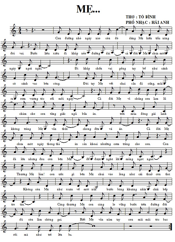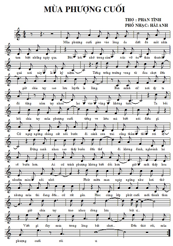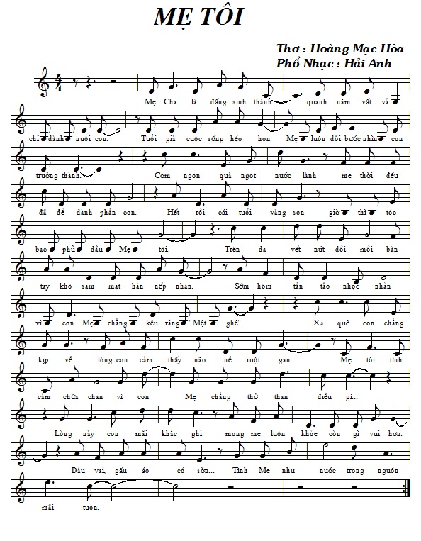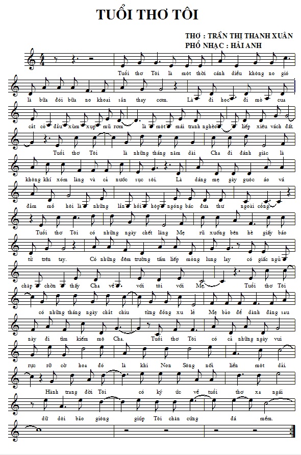 Các bản nhạc đăng TÁC PHẨM MỚI số 18. Hải Anh: Nghề chính của tôi là LƯƠNG Y. khám chữa bệnh đem lại sức khoẻ cho mọi người. Tôi luôn lấy: Niềm vui khỏi bệnh của bệnh nhân làm niềm vui của mình. Nỗi buồn mang bệnh của bệnh nhân làm nỗi buồn của mình. Và luôn coi sinh mệnh của bệnh nhân như người thân của mình. Và sau những thời gian căng thẳng nghiên cứu khám chữa bệnh đem lại sức khoẻ cho bệnh nhân của mình. Tôi thường thư giãn chơi ghi ta,vào các blog để đọc thơ và phổ nhạc cho những vần thơ hay, mong chắp cánh cho những bài thơ hay đó đến với đông đảo công chúng yêu thơ nhạc trong cả nước.