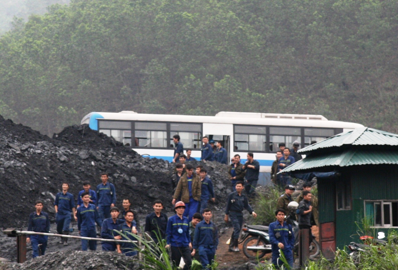 Thợ lò Đồng Vông vào ca. Ảnh: Cao Thâm (chụp ngày 25/3/2014 - trong chuyến làm phim về Công ty than Uông Bí)