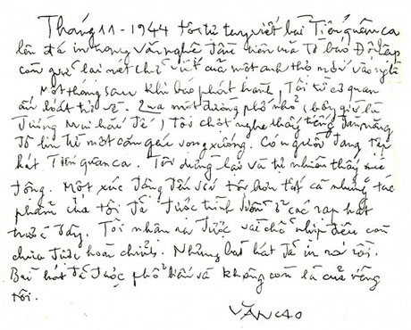 Nỗi niềm Nhạc sỹ Văn Cao...