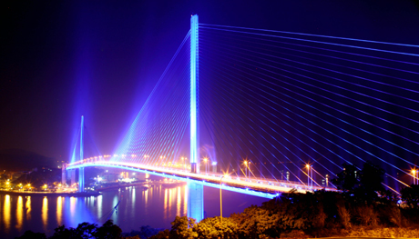 - Từ dưới gầm cầu nhìn ngược lên, những sợi dây văng trong ánh sáng lung linh, giống như những phím đàn Piano khổng lồ…