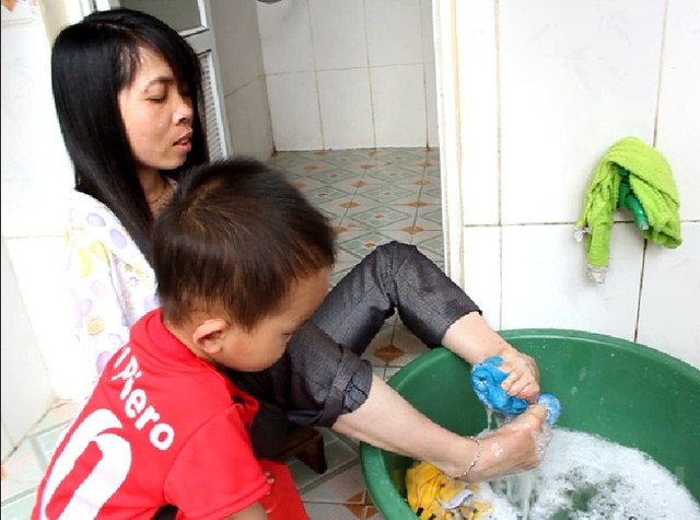 Nguyệt Ánh giặt và trông em