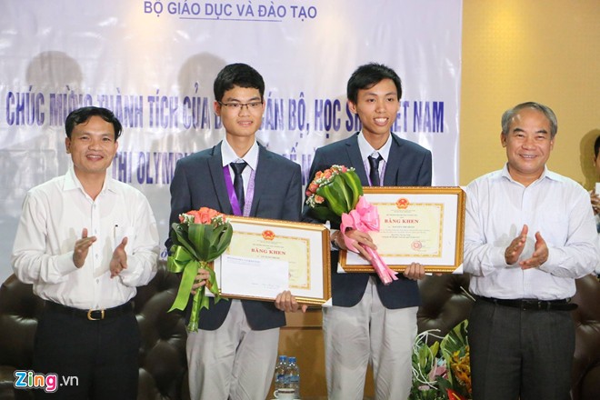 Tối 16/7/2015, Bộ GD&ĐT tổ chức lễ đón đoàn Việt Nam thi Olympic Toán quốc tế tại sân bay Nội Bài (Hà Nội). Tới dự có Thứ trưởng GD&ĐT Nguyễn Vinh Hiển (bên phải) và Cục trưởng Cục khảo thí và Kiểm định Chất lượng Giáo dục Mai Văn Trinh (bên trái). Năm nay, 6 thí sinh Việt Nam tham dự Olympic toán Quốc tế đều đoạt giải cao:2 Huy chương Vàng, 3 huy chương Bạc, 1 Huy chương Đồng; xếp thứ 5 thế giới.