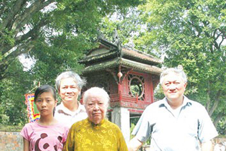 Cụ bà Trịnh Văn Bô tại Văn Miếu Quốc Tử Giám. Ảnh Xuân Ba