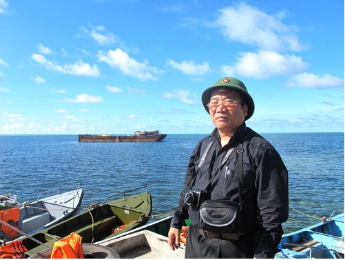 Nhà thơ Trần Đăng Khoa tại Trường Sa, năm 2013
