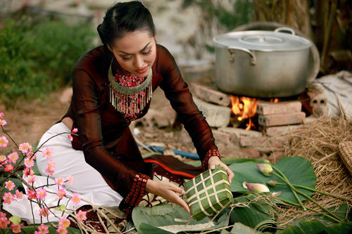 Gói xong giò, Thày và cậu tôi bắt đầu gói bánh chưng. Thày tôi gói bằng khuôn, còn cậu tôi thì gói vo. Không biết bây giờ thế nào, chứ hồi còn nhỏ, tôi thấy cái bánh chưng của vùng tôi quả là “vĩ đại”. Sau khi lót lá xong, bát nếp thứ nhất đổ dàn đều trong lòng khuôn. Tiếp theo là một nắm đỗ xanh to bằng quả trứng ngỗng, đã được đồ chín và giã nhuyễn, cùng mấy miếng thịt ba chỉ ướp hành, nước mắm, hạt tiêu, thảo quả… làm nhân, cuối cùng lại một bát gạo nữa. Trọng lượng của cái bánh phải đạt tới trên một kg cũng nên. Sau này, khi sống ở Huế, các dịp Tết nhất, người ta cũng gói bánh chưng, nhưng những chiếc bánh to nhất cũng chỉ bằng phân nửa cái bánh chưng quê tôi mà thôi. Mọi người nói rằng, gói nhỏ như vậy trông nó sang và thanh lịch hơn. Trong thâm tâm, tôi vẫn thích cái xum xuê, phồn thịnh, quê kiểng của cái bánh chưng vùng tôi hơn… Khoảng chín giờ sáng, bánh chưng đã được gói xong. Thày tôi lót một ít thân cây dong xuống đáy một nồi đồng to, xếp bánh vào, rồi đổ đầy nước, đốt củi khai hỏa. Phải nấu hơn mười tiếng thì bánh mới chín kỹ, Thày tôi dặn vậy.